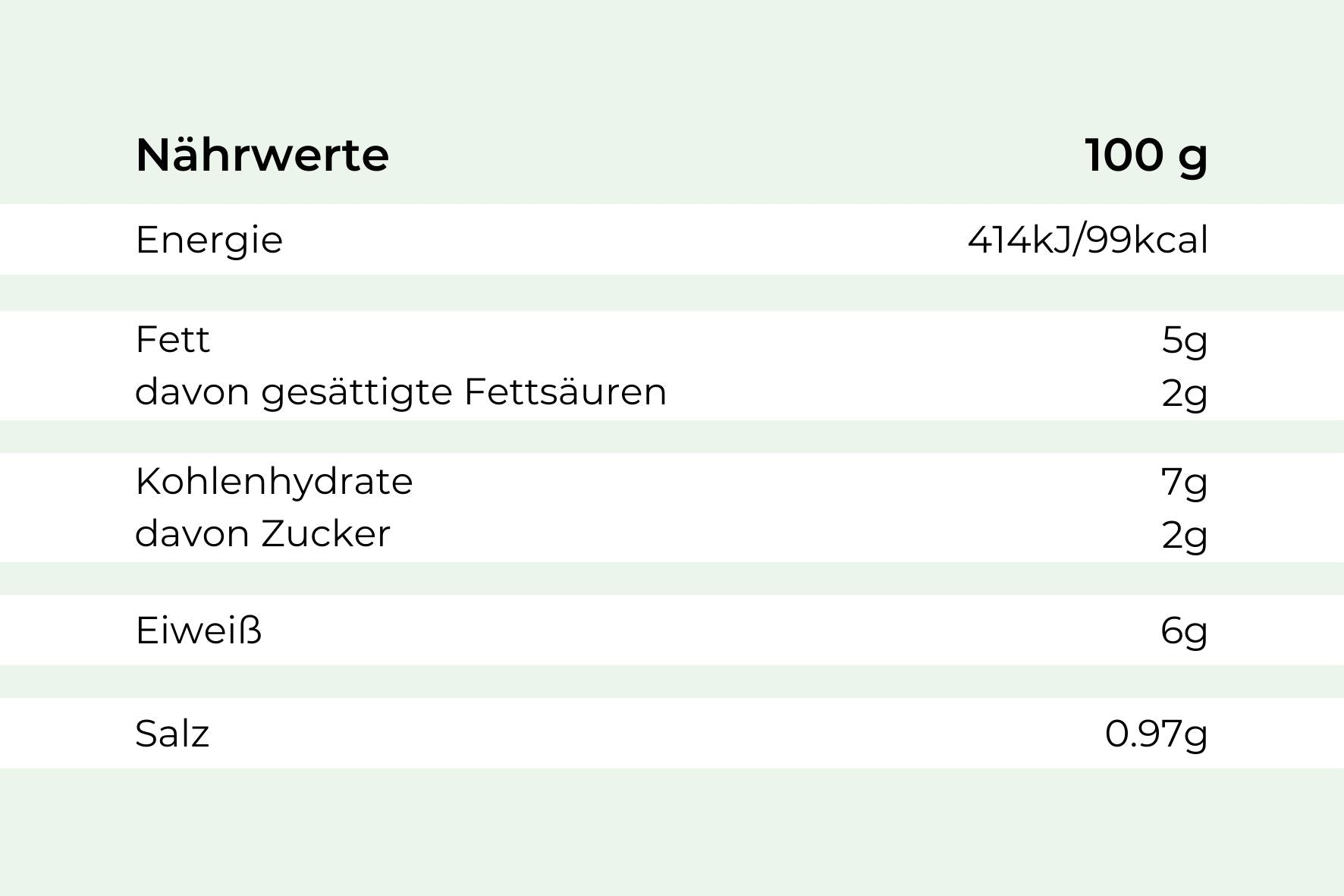 AUSZUG AUS DEN NÄHRWERTEN / 100 G Brennwert: 99 kcal