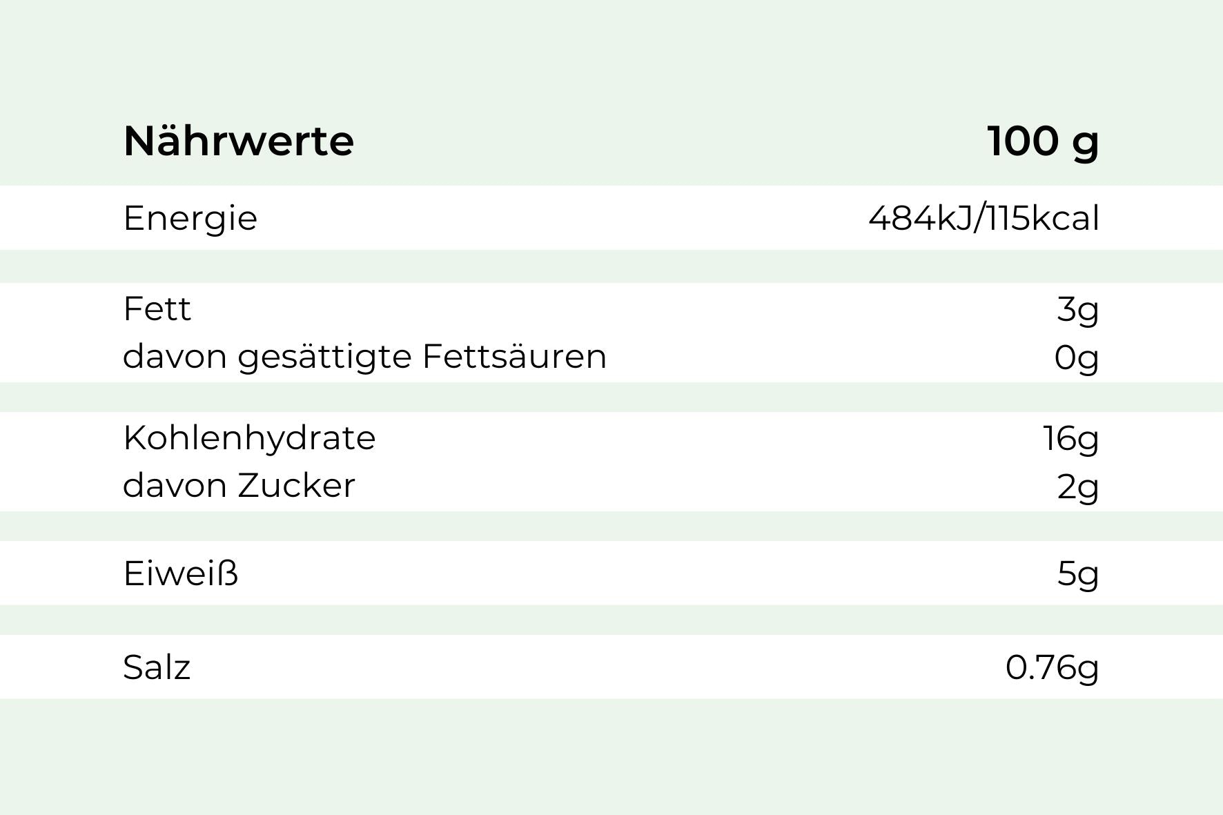 AUSZUG AUS DEN NÄHRWERTEN / 100 G Brennwert: 115 kcal