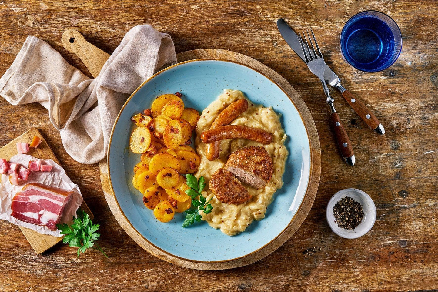 In dieser 16er-Box ist für jeden etwas dabei! Von Omas Fleischpflanzerl über zartes Kalbsschnitzel bis hin zu unserem leckeren Kaiserschmarrn findest Du sicher viele neue Favoriten.